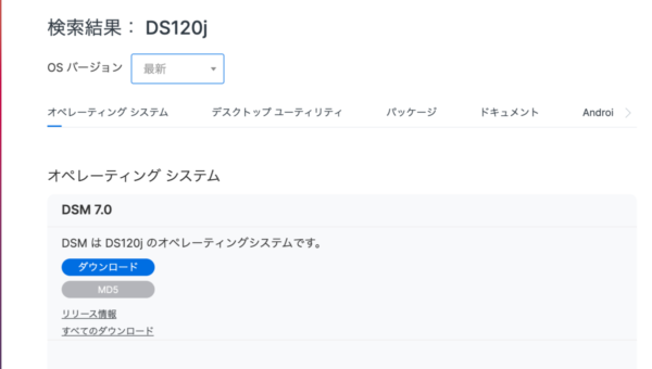 1.Synologyのサイトへ行ってファイルをダウンロード